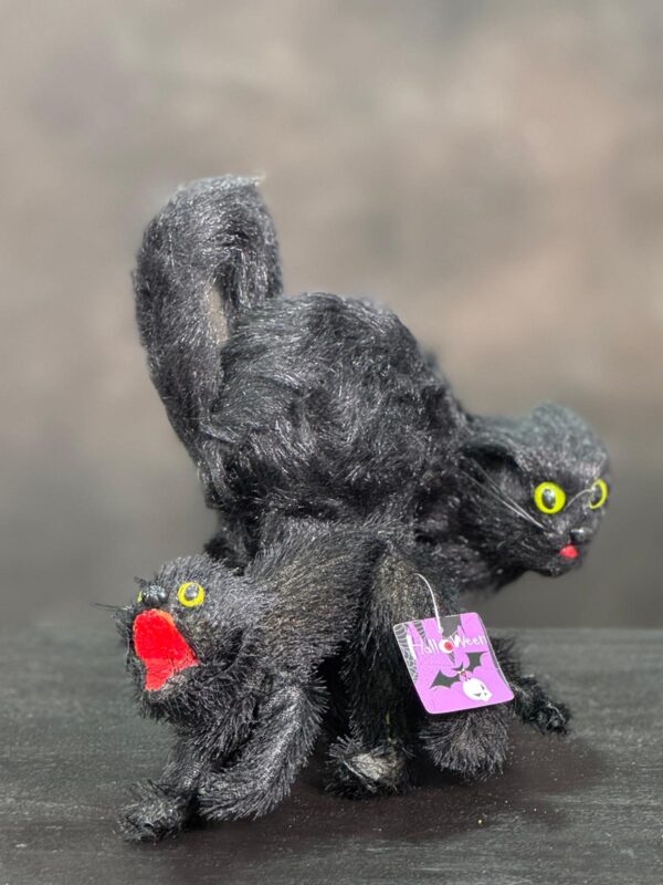 Porta un tocco misterioso e affascinante alle tue decorazioni di Halloween con questa coppia di gatti neri! Realizzati con cura e dettagliati con pelo morbido e lucente, questi gattini decorativi sono perfetti per creare un’atmosfera magica e leggermente “stregata”.
