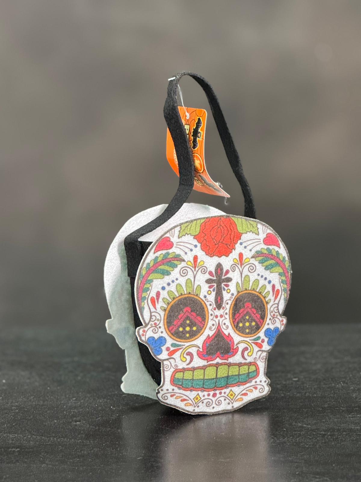 Dai un tocco originale e vivace alla tua festa di Halloween con questo cestino a forma di teschio ispirato allo stile “Sugar Skull”! Realizzato in feltro morbido e resistente, presenta decorazioni colorate e dettagli curati che richiamano la tradizione del Día de los Muertos.