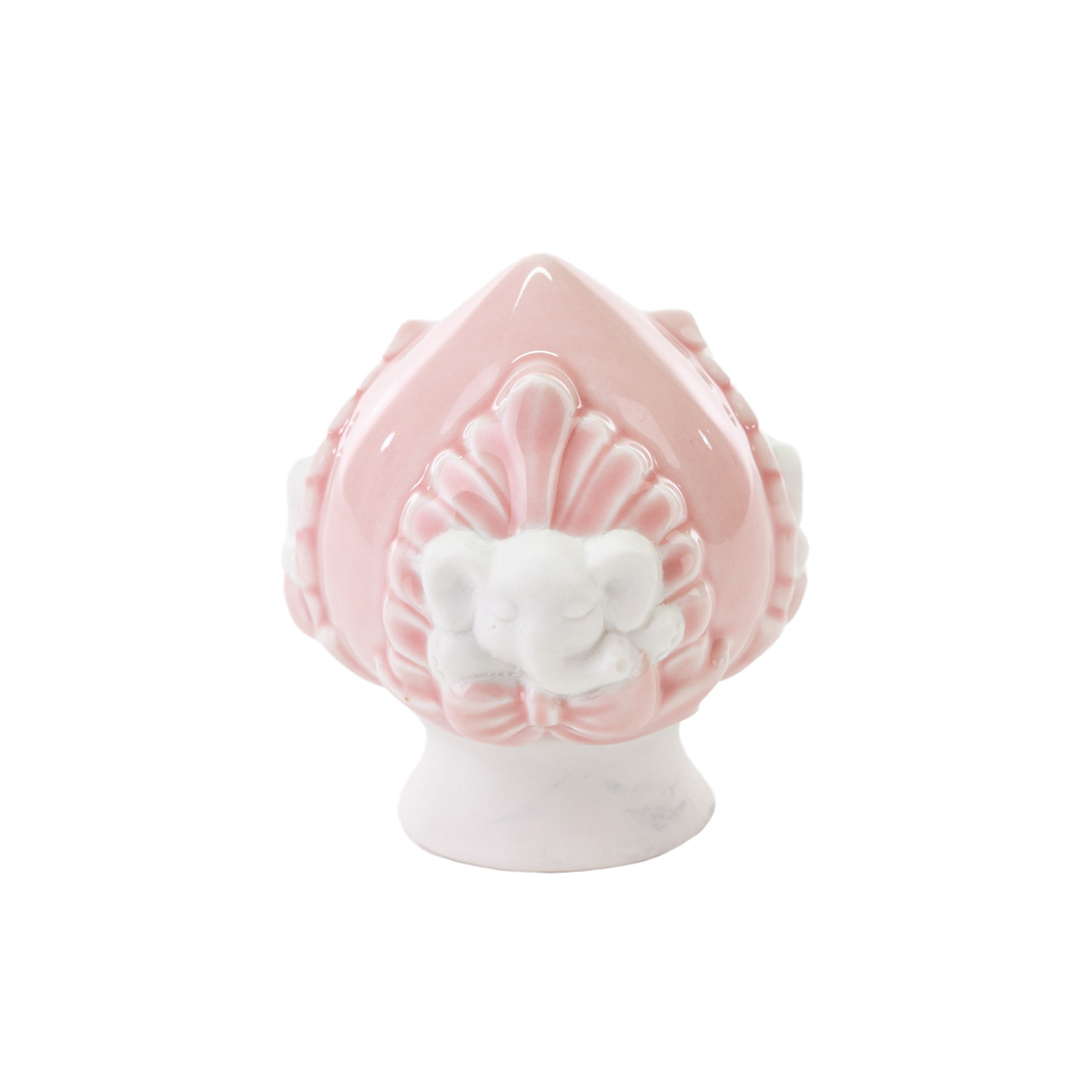 Un piccolo elefante in porcellana rosa, un dettaglio delicato e raffinato che cattura l’attenzione. Perfetto come bomboniera per celebrare una nuova nascita o un battesimo, dona un tocco di grazia ad ogni occasione speciale. Le sue dimensioni compatte lo rendono ideale per decorare qualsiasi ambiente con sobria finezza.