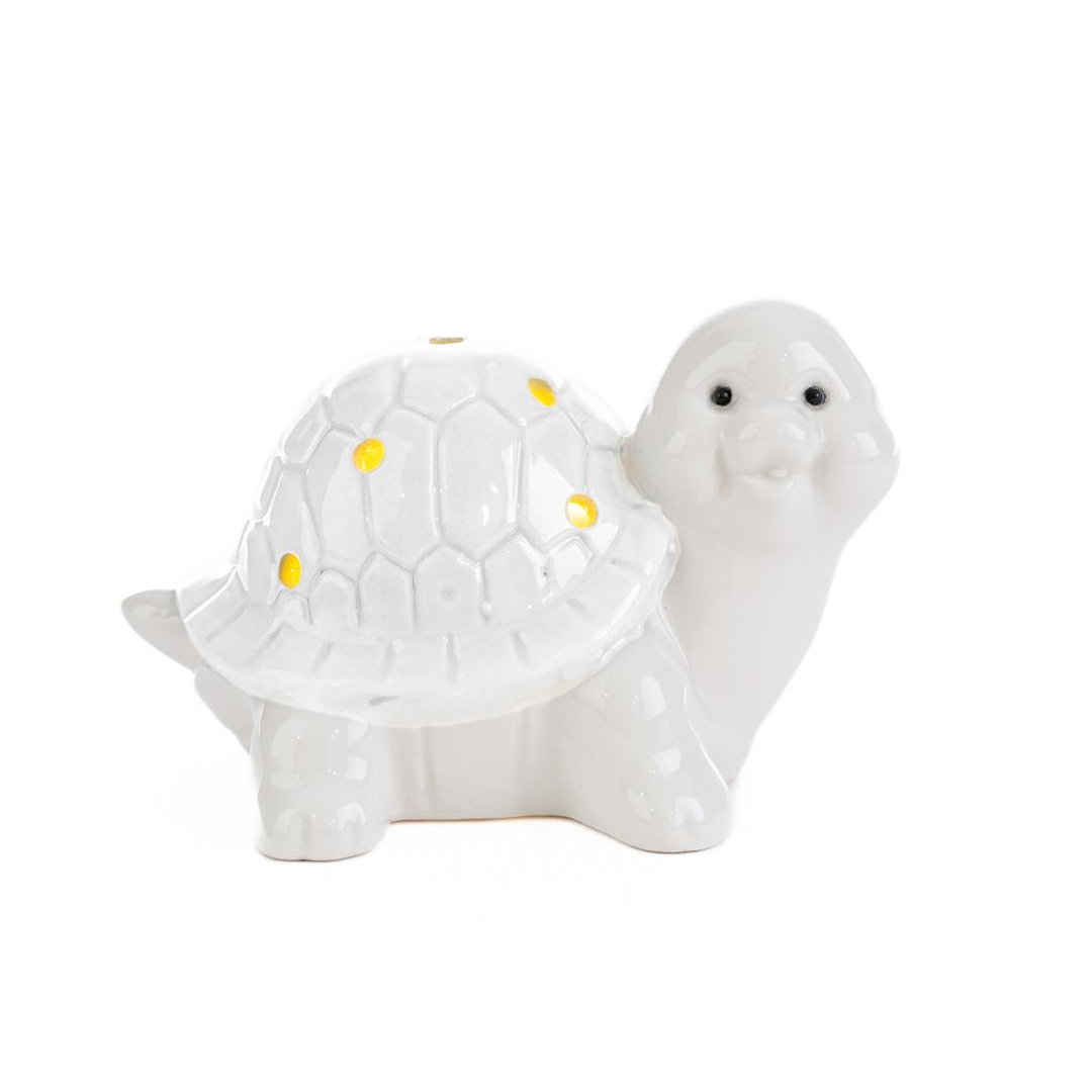 Un tocco di raffinatezza per celebrare i momenti speciali: questa tartaruga in porcellana bianca con luce LED integra design delicato e utilità. Con dimensioni compatte di 8 x 10 x h.6 cm, è perfetta come bomboniera per una nuova nascita o un battesimo, aggiungendo calore e stile all’occasione.