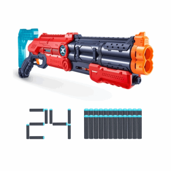 - Capacità elevata: Include 24 dardi in schiuma X-Shot, ideali per sessioni di gioco prolungate senza dover ricaricare spesso.